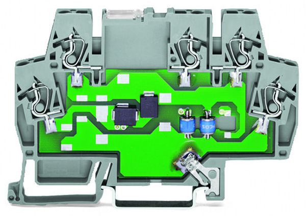 Ein Überspannungsschutz ist auch in der Reihenklemme für Tragschiene 35 möglich. Nur 6 mm schmale, mehrstufige Ableiter in Reihenklemmenform der Serie 792-80x sorgen für einen platzsparenden, kostengünstigen Schutz von Steuerungs- und Bustechnik, z. B. LON®-Netzwerk, PROFIBUS-Netzwerk, Binärsignale etc.