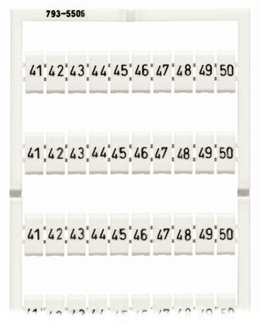 WMB-Beschriftungskarte; als Karte; bedruckt; 41 ... 50 (10x); dehnbar 5 - 5,2 mm; Aufdruck waagerecht; aufrastbar; weiß