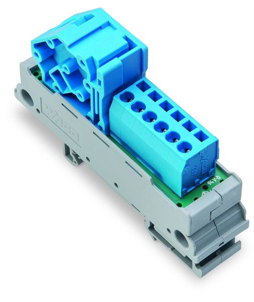 Potentialverteilermodul; 1 Potential; mit 1 Einspeiseklemmstelle; Leiterquerschnitt bis 16 mm²; mit 6 Ausgangsklemmstellen; Leiterquerschnitt bis 2,5 mm²; blau