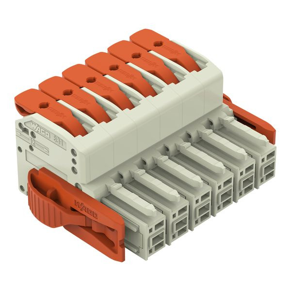 1-Leiter-Federleiste; Hebel; Push-in CAGE CLAMP®; 10 mm²; Rastermaß 7,62 mm; 6-polig; 100% fehlsteckgeschützt; seitliche Verriegelungsklinken; 10,00 mm²; lichtgrau