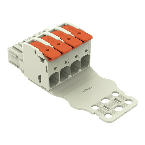 1-Leiter-Federleiste; Hebel; Push-in CAGE CLAMP®; 16 mm²; Rastermaß 10,16 mm; 4-polig; 100% fehlsteckgeschützt; Zugentlastungsplatte; versilberte Kontakte; 16,00 mm²; lichtgrau