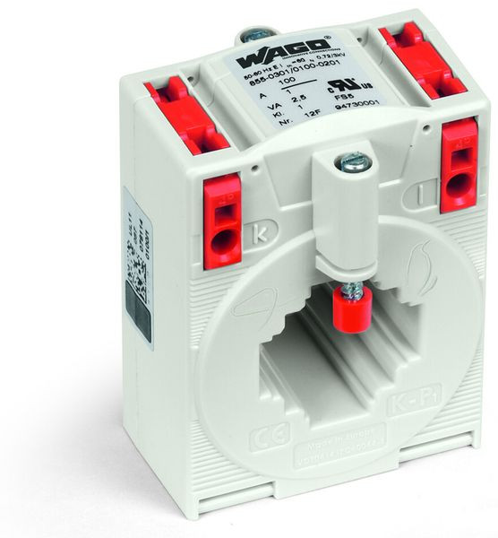 Aufsteck-Stromwandler; Primärer Bemessungsstrom 100 A; Sekundärer Bemessungsstrom 1 A; Bemessungsleistung 2,5 VA; Genauigkeitsklasse 1