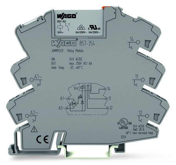 Relaismodul; Eingangsnennspannung AC/DC 24 V; 1 Wechsler; Grenzdauerstrom 6 A; Statusanzeige gelb; 6 mm Baubreite
