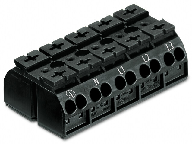4-Leiter-Geräteanschlussklemme; für Anwendungen Ex e II geeignet; ohne PE-Kontakt; PE-N-L1-L2-L3; 5-polig; 4 mm²; 4,00 mm²; schwarz