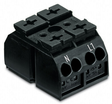 4-Leiter-Geräteanschlussklemme; ohne PE-Kontakt; N-L1; 2-polig; 1 Rastfuß pro Pol; 4 mm²; schwarz