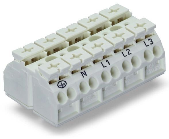 | Kurzbeschreibung | 4-cond. chassis-mount terminal strip Snap-in feet at pos. 135 PE-N-L1-L2-L3 white |