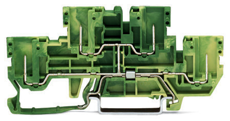 4-Pin-Doppelstock-Basisklemme; 4-Pin-Schutzleiterklemme; PE; intern gebrückt; für Tragschiene 35 x 15 und 35 x 7,5; grün-gelb