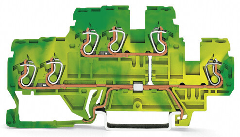 3-Leiter-Doppelstockklemme; 6-Leiter-Schutzleiterklemme; 2,5 mm²; PE; intern gebrückt; für Tragschiene 35 x 15 und 35 x 7,5; CAGE CLAMP®; 2,50 mm²; grün-gelb