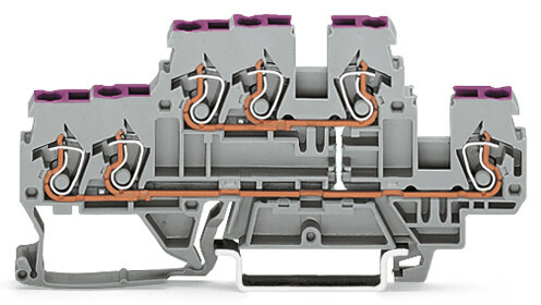 3-Leiter-Doppelstockklemme; 6-Leiter-Durchgangsklemme; L; intern gebrückt; Leitereinführung violett bedruckt; für Tragschiene 35 x 15 und 35 x 7,5; 2,5 mm²; CAGE CLAMP®; 2,50 mm²; grau