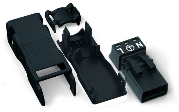 | Kurzbeschreibung | Stecker,mit Zugentlastungsgehäuse,3-polig,schwarz |