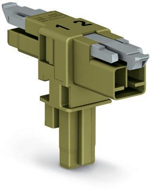 T-Verteiler; 2-polig; Kod. B; 1 Eingang; 2 Ausgänge; 2 Verriegelungsklinken; hellgrün
