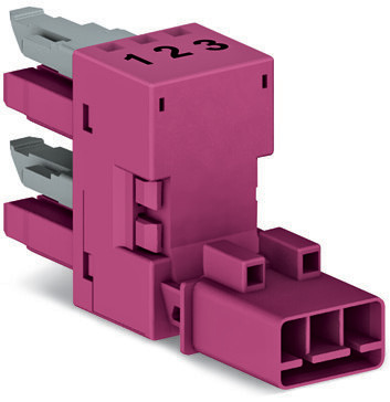 h-Verteiler; 3-polig; Kod. B; 1 Eingang; 2 Ausgänge; einseitige Abgänge; 2 Verriegelungsklinken; pink
