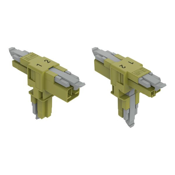 T-Verteiler; 2-polig; Kod. B; 1 Eingang; 2 Ausgänge; 3 Verriegelungsklinken; für fliegende Verbindungen; hellgrün