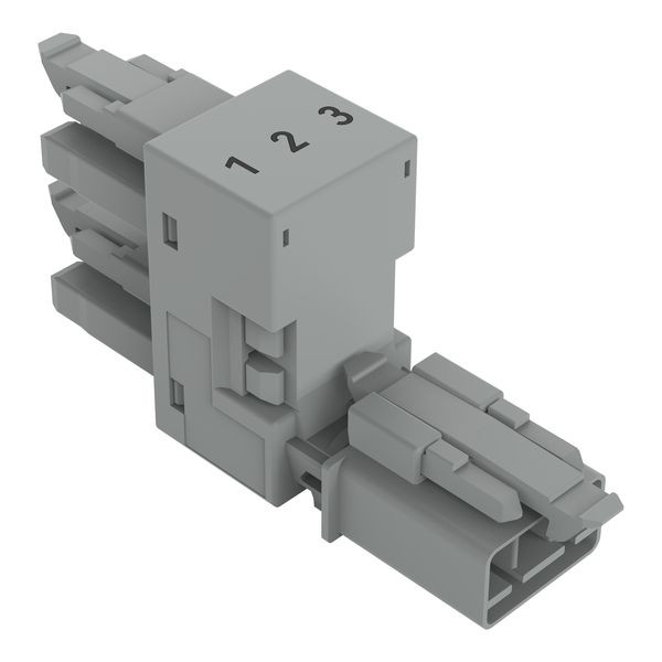 h-Verteiler; 3-polig; Kod. B; 1 Eingang; 2 Ausgänge; einseitige Abgänge; 3 Verriegelungsklinken; für fliegende Verbindungen; grau