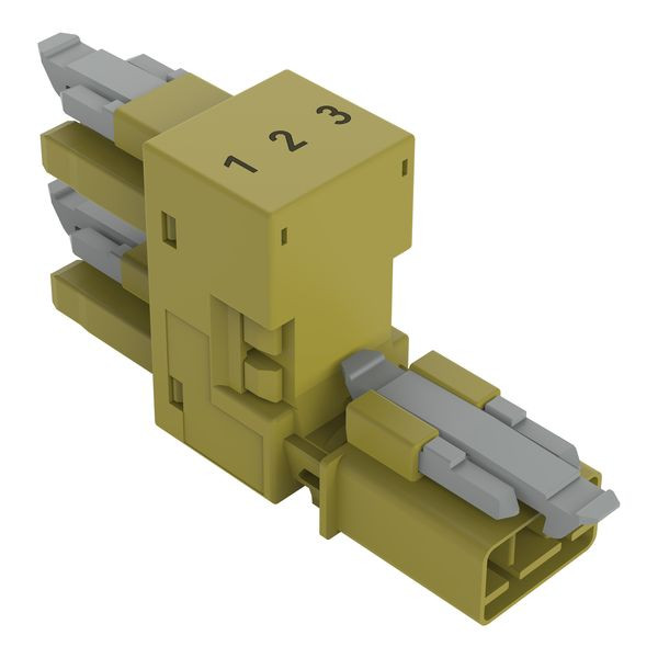 h-Verteiler; 3-polig; Kod. B; 1 Eingang; 2 Ausgänge; einseitige Abgänge; 3 Verriegelungsklinken; für fliegende Verbindungen; hellgrün