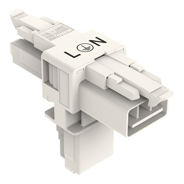 T-Verteiler; 3-polig; Kod. A; 1 Eingang; 2 Ausgänge; 3 Verriegelungsklinken; für fliegende Verbindungen; weiß