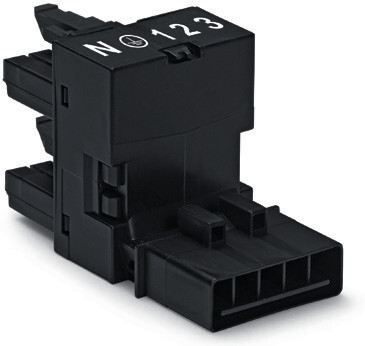 h-Verteiler; 5-polig; Kod. A; 1 Eingang; 2 Ausgänge; einseitige Abgänge; 2 Verriegelungsklinken; schwarz