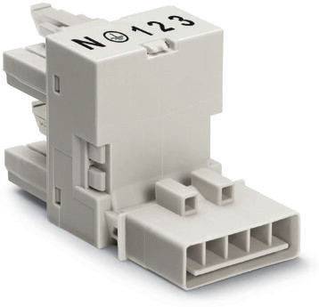 h-Verteiler; 5-polig; Kod. A; 1 Eingang; 2 Ausgänge; einseitige Abgänge; 2 Verriegelungsklinken; weiß