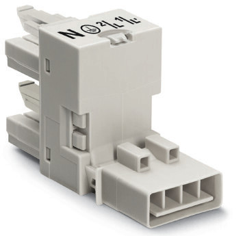 h-Verteiler; 4-polig; Kod. A; 1 Eingang; 2 Ausgänge; einseitige Abgänge; 2 Verriegelungsklinken; weiß