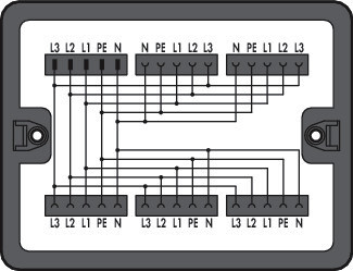Verteilerbox; Drehstrom (400 V); 1 Eingang; 5 Ausgänge; Kod. A; MIDI; schwarz