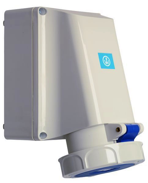 WALTHER Wandsteckdose 63A 5P 230V 9h IP67 aus PA6-Material mit einer offenen Kabeleinführung oben und 2 ausbrechbaren Kabeleinführungen unten Unterteil ist um 180° drehbar zur Innenbefestigung