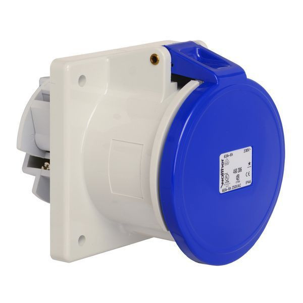 | Kurzbeschreibung | Panel socket straight 63A 3P 6h with flange 107x100mm |