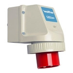| Kurzbeschreibung | Wasserdichter Wandgerätestecker zur Innenbefestigung 16A 4P 6h mit je 2 ausbrech. Kabeleinf. oben/unten und ausbrech. Bodeneinf. |