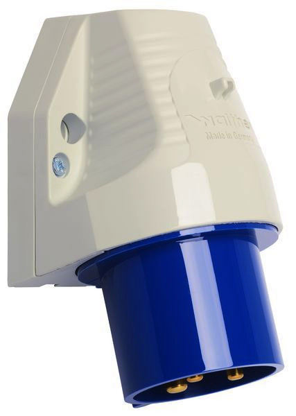 | Kurzbeschreibung | Wandgerätestecker zur Außenbefestigung 32A 3P 6h mit einer Kabeleinführung oben |