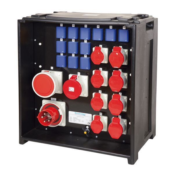 | Kurzbeschreibung | Steckdosenverteiler In:125A mit 8 CEE-Abgänge 16-125A, 12 Schukos, Phasen-,Sequenzanzeige und Anbaugerätestecker 125A |