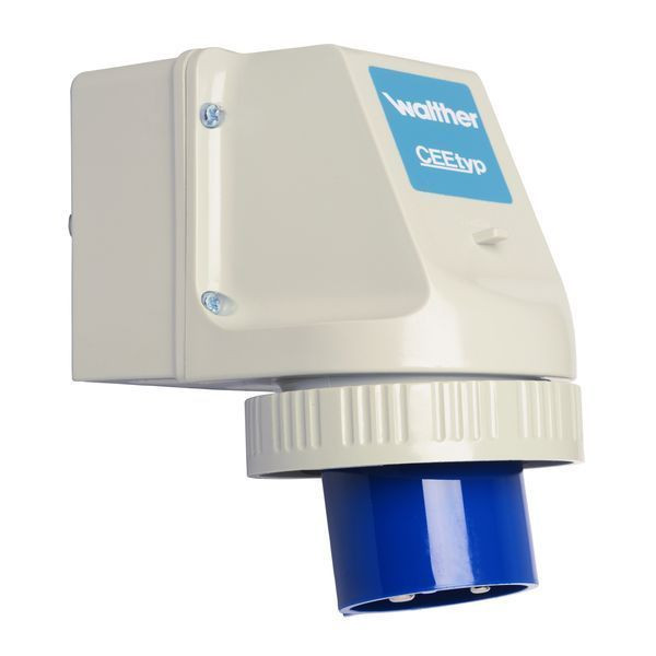 WALTHER Wandgerätestecker 32A 3P 230V 6h IP67 aus PA6-Material mit zwei Kabeleinführungen oben und unten und einer ausbrechbaren Bodeneinführung zur Innenbefestigung
