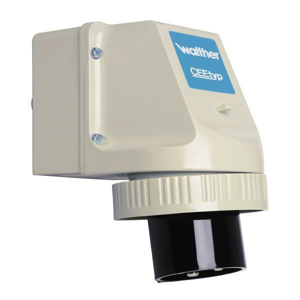 WALTHER Wandgerätestecker 32A 4P 500V 7h IP67 aus PA6-Material mit zwei Kabeleinführungen oben und unten und einer ausbrechbaren Bodeneinführung zur Innenbefestigung