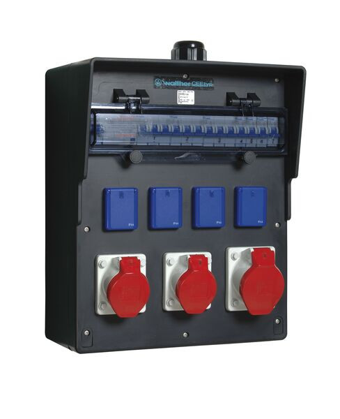 | Kurzbeschreibung | Solid-rubber socket combination In: 63A with one RCD Type A, seven MCBs, three CEE outlets 16-32A, four Schuko sockets and terminal set K25 10P |