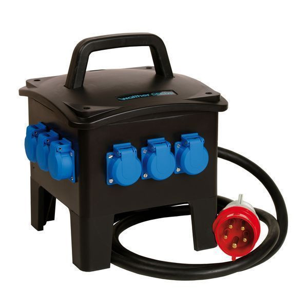 WALTHER Tragbare Vollgummi-Steckdosenkombinationnach IEC 61439-Teil 1 und 4Stapelbares Gehäuse (649) aus unzerbrechlichem, alterungs-, säuren- und laugenbeständigem Vollgummi Farbe: schwarz mit Tragegriff mit selbstschließendem Klarsichtdeckel alle außenliegenden Metallteile sind aus EdelstahlSchutzklasse IISchutzart: IP44Größe ca.: 339 x 270 x 280mm / H-B-T Anschluss:2 Meter Anschlussleitung H07RN-F5G2,5 mit CEE-Stecker 16A 5P 400V 6h Abgänge/ Absicherung:1 Fehlerstromschutzschalter (RCD) 4P 40A/30mA -A-6 Schutzkontaktsteckdosen nach DIN/VDE 0620-1 Steckdosenkombination nach DIN EN 61439:stückgeprüftanschlussfertig verdrahtetBemessungsstrom: 16A