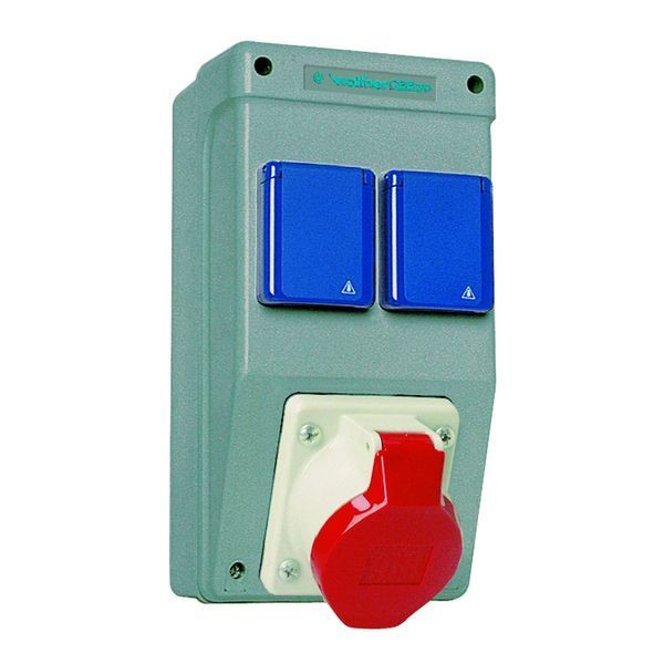 | Kurzbeschreibung | Chemical-resistant plastic socket combination In: 16A with one CEE outlet 16A, two Schuko sockets and connection up to 6 qmm 5P |