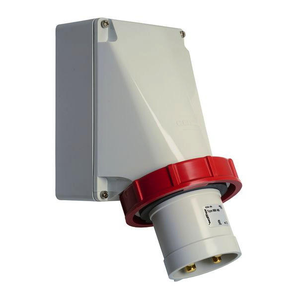 | Kurzbeschreibung | Wasserdichter Wandgerätestecker zur Außenbefestigung 63A 4P 4h mit Kabeleinf. oben und unvernickelten Kontakten |