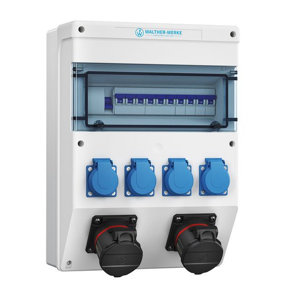 | Kurzbeschreibung | Kunststoff-Steckdosenkombination In: 40A mit einem RCD TypA, 6 MCBs, 2 NEO CEE Abgänge 16A, 4 Schukos und Klemmsatz K25 10P |