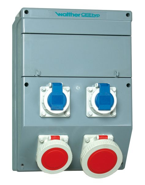 | Kurzbeschreibung | Chemikalienbest. und wasserd. Kunststoff-Steckdosenkombination In:40A mit einem RCD TypA,4 MCBs,2CEE-Abgänge 16-32A,2 Schukos und Klemmsatz K25 10P |