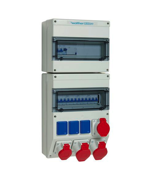 | Kurzbeschreibung | Plastic socket combination In: 100A with one RCD Type A, seven MCBs, four CEE outlets 16-32A, three Schuko sockets and terminal set K25 10P |