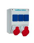 | Kurzbeschreibung | Kunststoff-Steckdosenkombination In: 32A/16A/16A mit 2 CEE-Abgänge 16-32A, 3 Schukos und 3 Klemmsätze K10 5P |