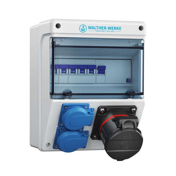 | Kurzbeschreibung | Kunststoff-Steckdosenkombination In: 32A mit einem RCD TypA, 3 MCBs, einem NEO CEE-Abgang 16A, 2 Schukos und Anschluss bis 25qmm 10P |