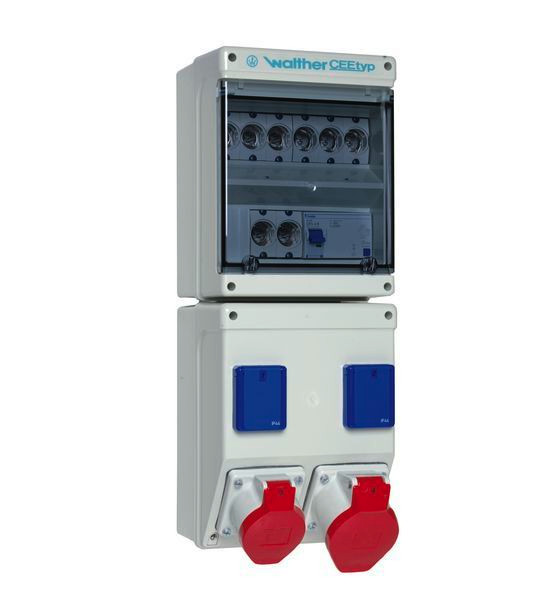 bestehend aus: 1 Gehäuse 695, 1 CEE-Anbaudose 5x32A, 1 CEE-Anbaudose 5x16A, 2 Schutzk.-Steckdosen, 1 Neozed 3pol., 63A