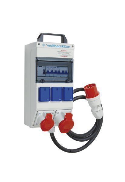 | Kurzbeschreibung | Tragbare Kunststoff-Steckdosenkombination In:32A mit einem RCD TypA,4 MCBs,2 CEE-Abgänge 16-32A,3 Schukos und Anschluss über Leitung mit 32A Stecker |