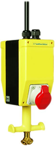 | Kurzbeschreibung | Kunststoff-Hängesteckdosenkombination In: 16A mit einem CEE-Abgang 16A, 2 Schukos, Anschluss bis 6qmm 5P und Druckluftanschluss |