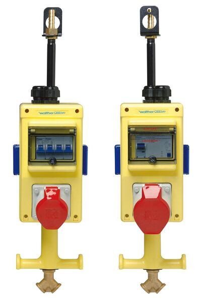 | Kurzbeschreibung | Plastic suspension-type combination In: 32A with one RCD Type A, two MCBs. two CEE outlets 16-32A, two Schuko sockets, connection up to 6 qmm 5P and compressed air connection |
