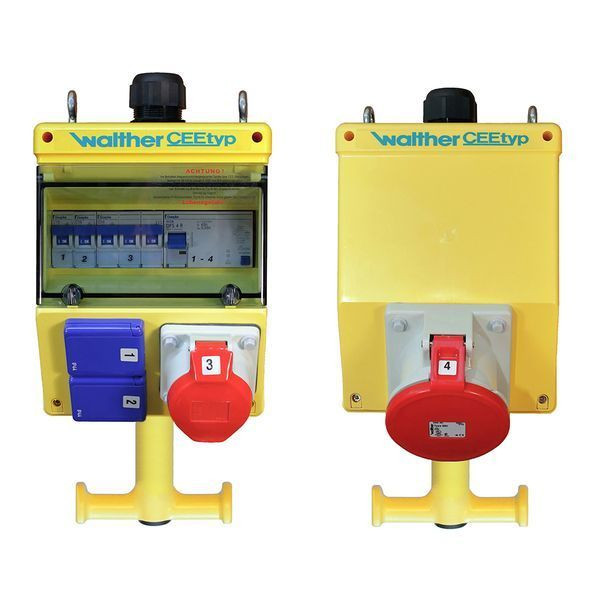 | Kurzbeschreibung | Kunststoff-Hängesteckdosenkombination In: 63A mit einem RCD TypA, 3 MCBs, 2 CEE-Abgänge 16-63A, 2 Schukos und Anschluss bis 25qmm 5P |