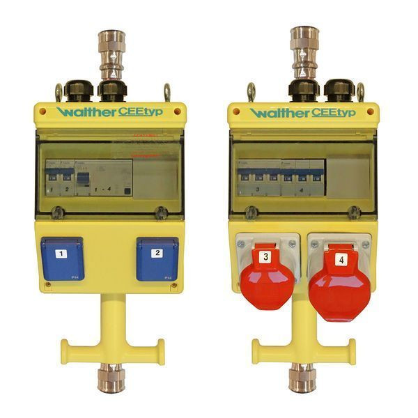 | Kurzbeschreibung | Plastic suspension-type combination In: 40A with one RCD Type A, four MCBs, two CEE outlets 16-32A, two Schuko sockets, connection up to 25 qmm 5P and compressed air connection |