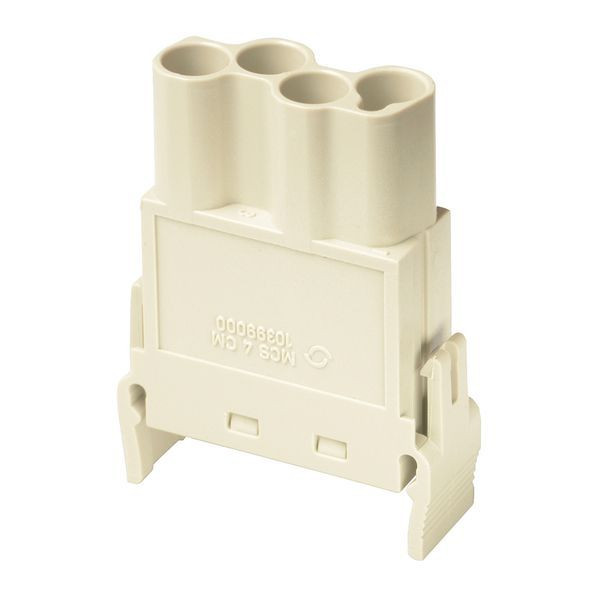 | Kurzbeschreibung | Crimpkontaktträger der Baureihe MO 4P für Stiftkontakte und mit einer Nummerierung von 1-4 |