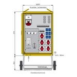 | Kurzbeschreibung | Mobiler Fest- und Marktplatzverteiler mit 3 RCDs TypA, 11 LS, 6 CEE-Abgängen 16-63A und 6 Schukos |