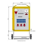 | Kurzbeschreibung | Mobiler Fest- und Marktplatzverteiler mit 3 RCDs TypA, 15 LS, 4 CEE-Abgängen 16-63A und 12 Schukos |