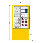 | Kurzbeschreibung | Industrie- und Marktplatzverteiler mit 4 RCDs TypA, 10 LS, 6 CEE-Abgängen 16-63A und 6 Schukos (1600x785x360mm / HxBxT) |